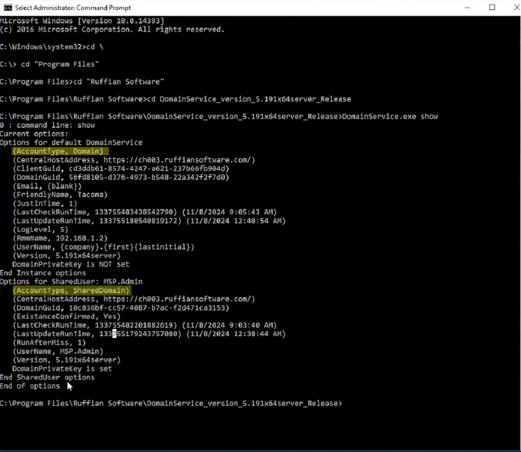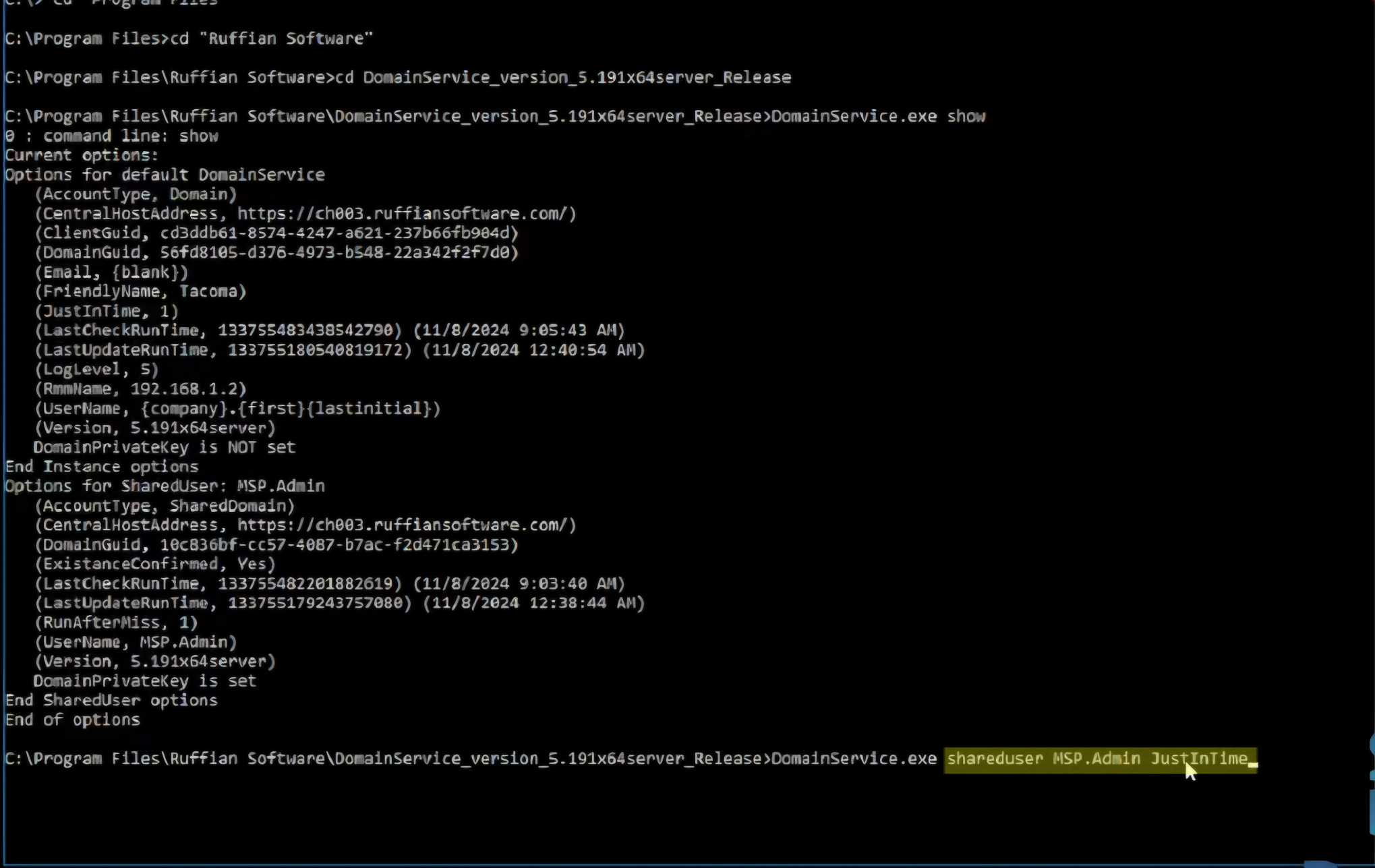 For example: to change the second (shared) instance to JIT; into the prompt, you would type in “techidagent.exe shareduser MSP.admin justintime ” and hit enter.