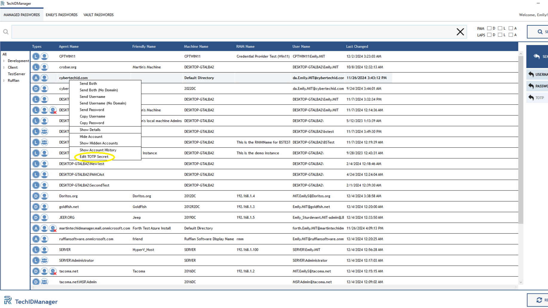 4. Go back to the TechIDClient and right click on the credential and select Edit OTP