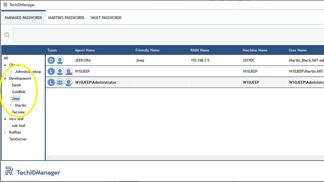 TechIDManager’s tree-based structure gives managers full control over how managed accounts and passwords are organized—while ensuring every technician sees credentials in a consistent, logical format for faster access.
